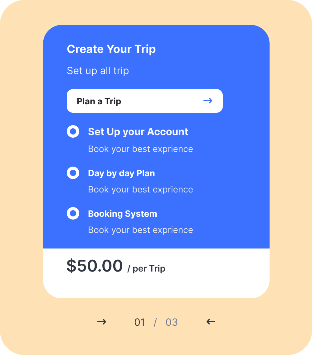 “Plan your trip with a 3-step trip plan. Check in out at a glance, select